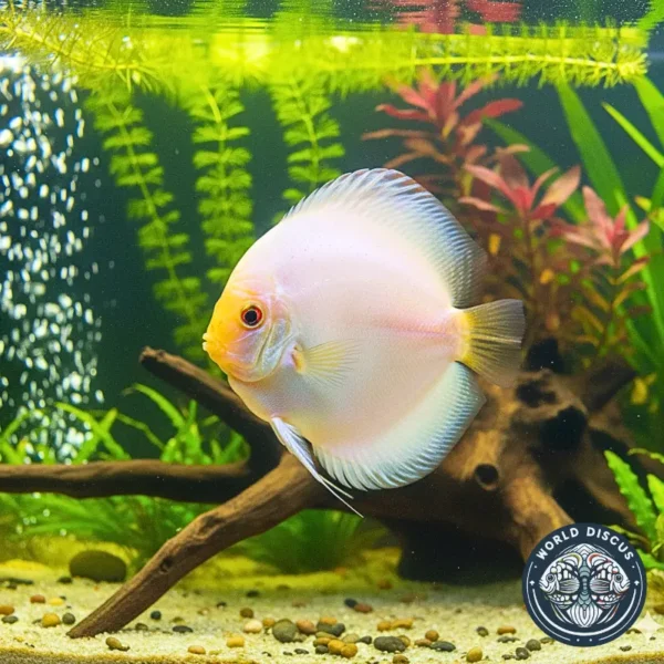 Añade un toque de pureza y serenidad a tu acuario con el Snow White Discus, ¡un pez que brillará como una joya en tu tanque! 🐟✨